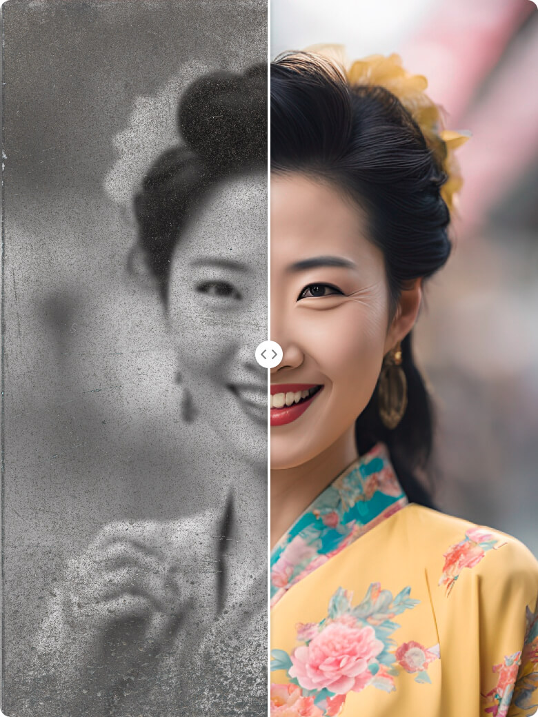 AI智能图像修复技术,修复模糊照片、低清照片、斑驳痕迹;黑白照上色,精准还原场景色彩,赋予旧照片新生。